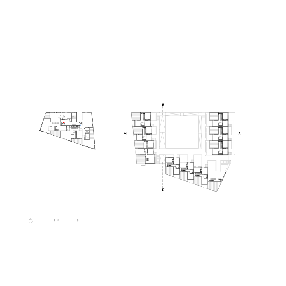 il s’agit également de valoriser le sens associé à la constitution d’un nouvel îlot dans un tissu urbain hérité des années 60. ce sens induit notamment la possibilité de placer le logement au cœur de la ville, c’est à dire entre un espace public et un espace privé-partagé.