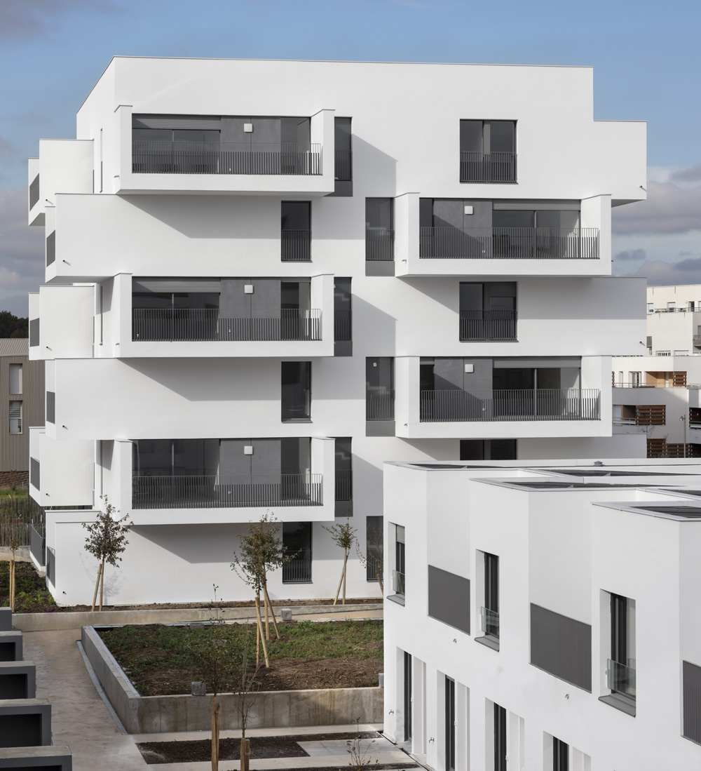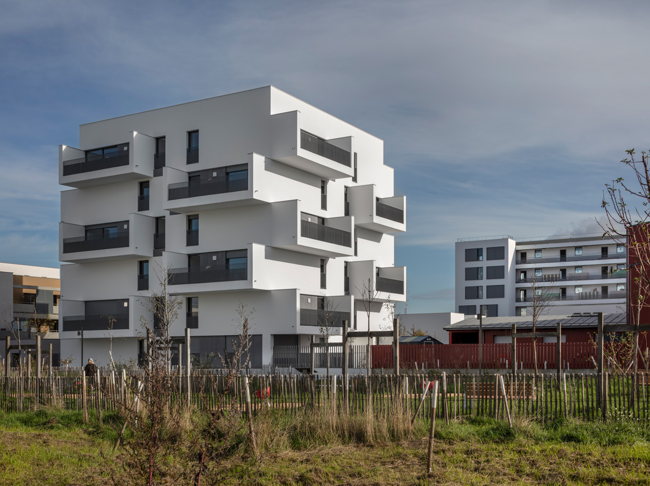 Chaque corps de bâtiment offre un cadrage vers des jardins partagés. A la liaison entre chacun sont prévus