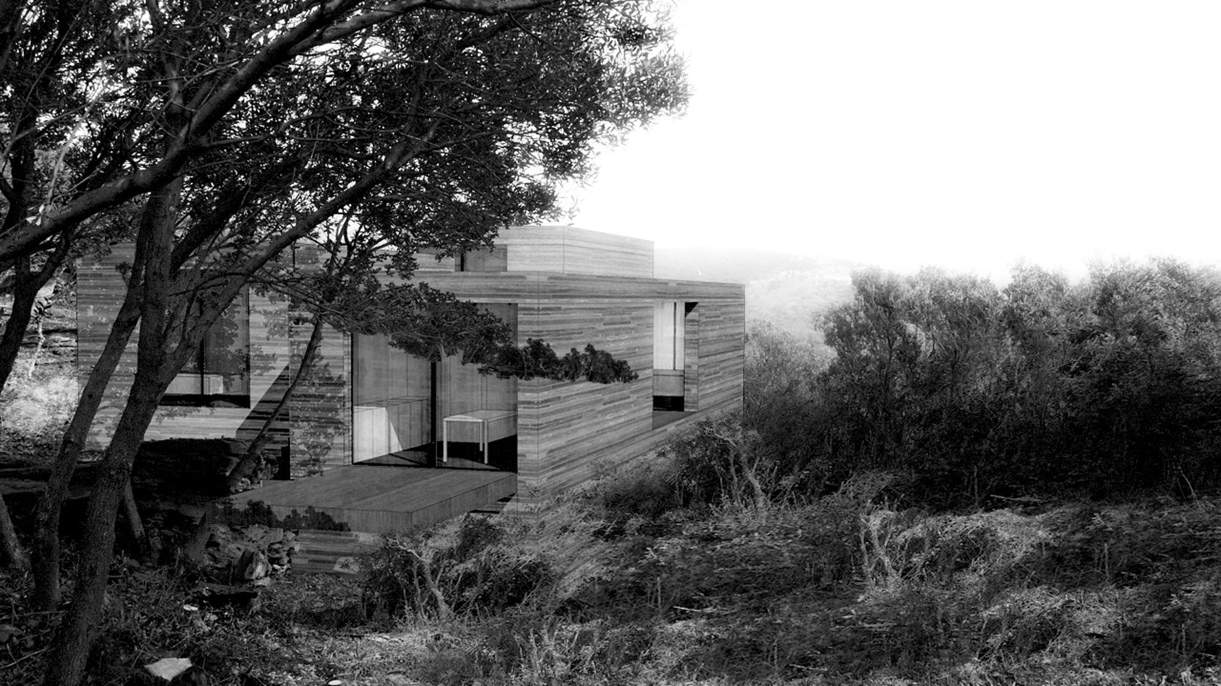 L’idée de ce projet en matière de paysage est de le sélectionner. Le paysage, lorsqu’il est omniprésent et qu’il a la force de celui de Centuri, ne doit pas devenir un fond que l’on oubli. Lorsque l’on s’en prive un moment, on l’appréciera avec encore plus de plaisir lorsqu’on le redécouvrira. C’est toute l’idée développée par cette maison.