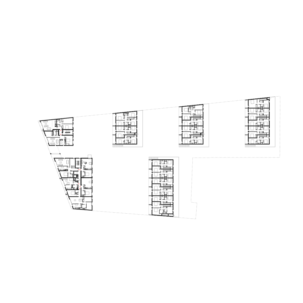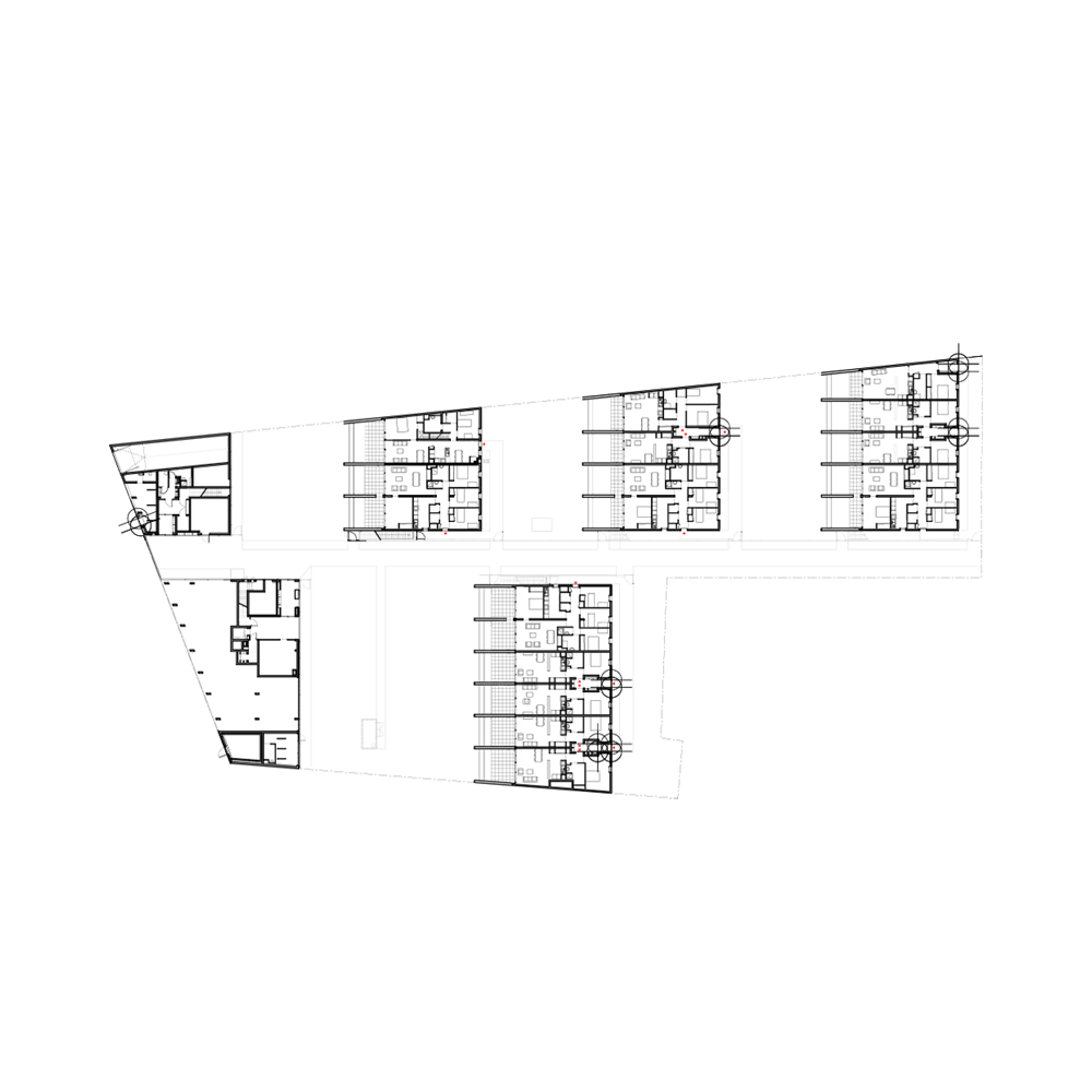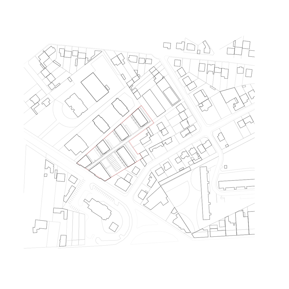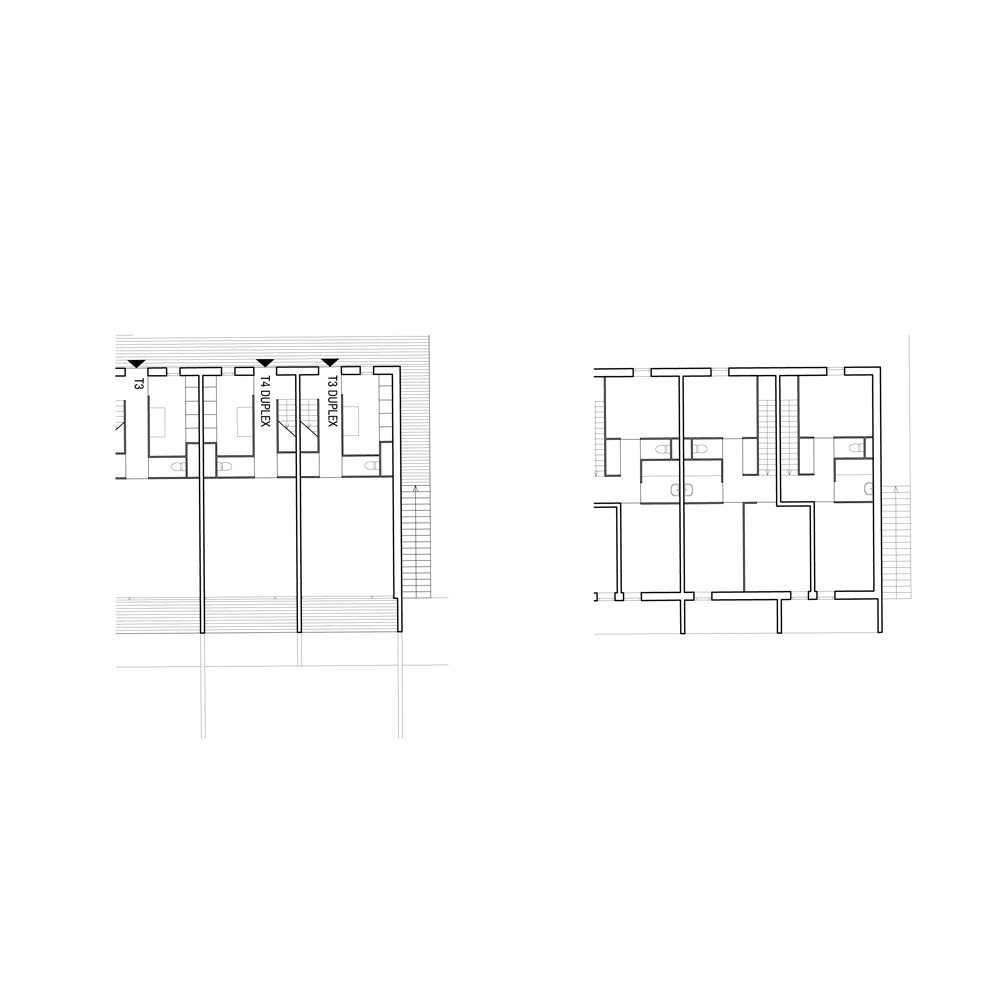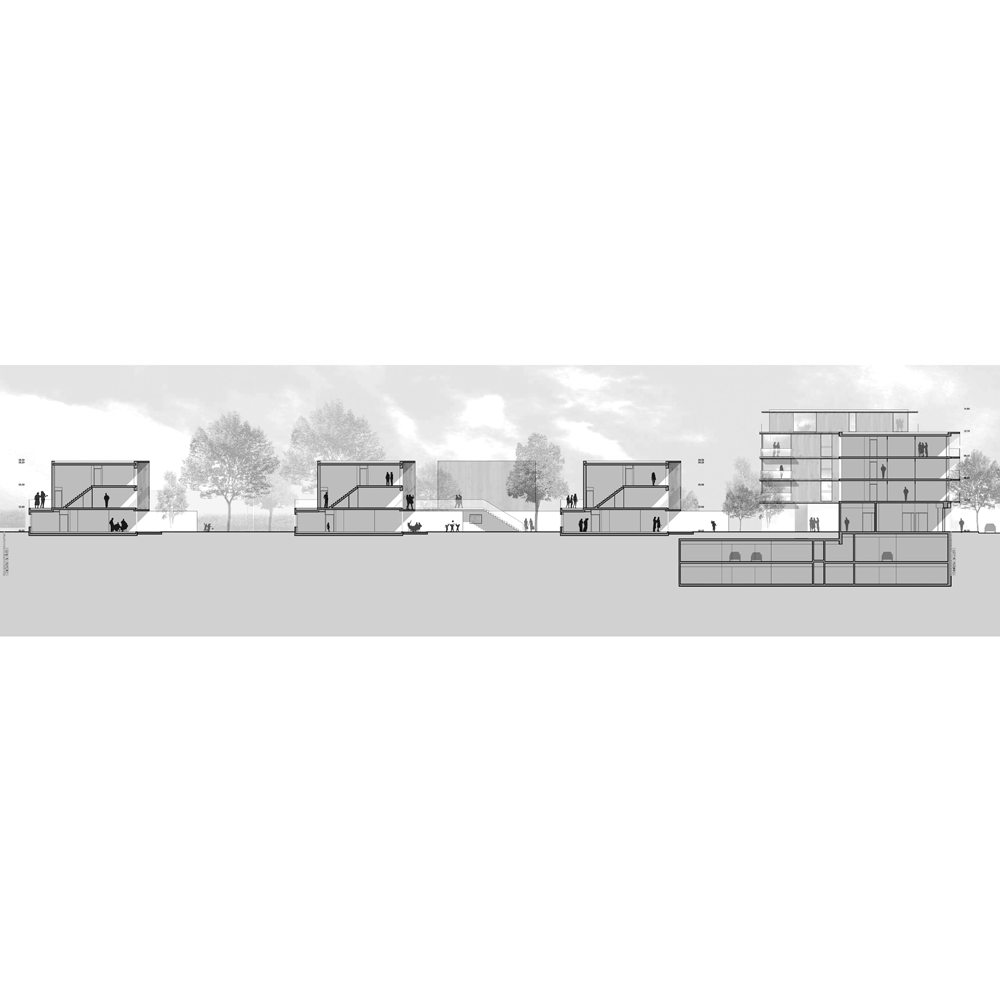 – de quatre séries de maisons de ville superposées qui prennent place sur la profondeur de l’îlot et propose une alternative au logement collectif.