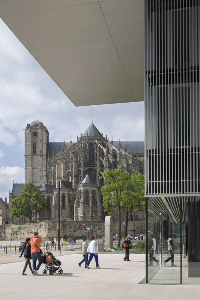 Très naturellement, le projet se structure, au pied de la cathédrale, sur la forme classique et orthogonale