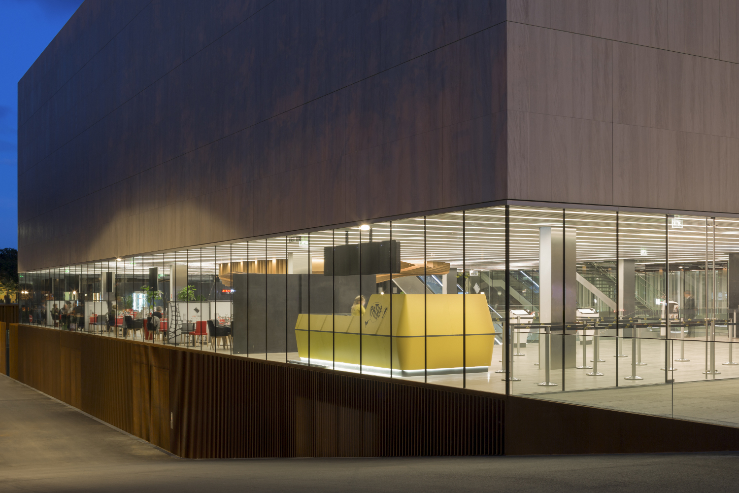 A l’intérieur, l’espace redéfinit l’univers du Multiplexe par une image plus lumineuse, transparente et prestigieuse.