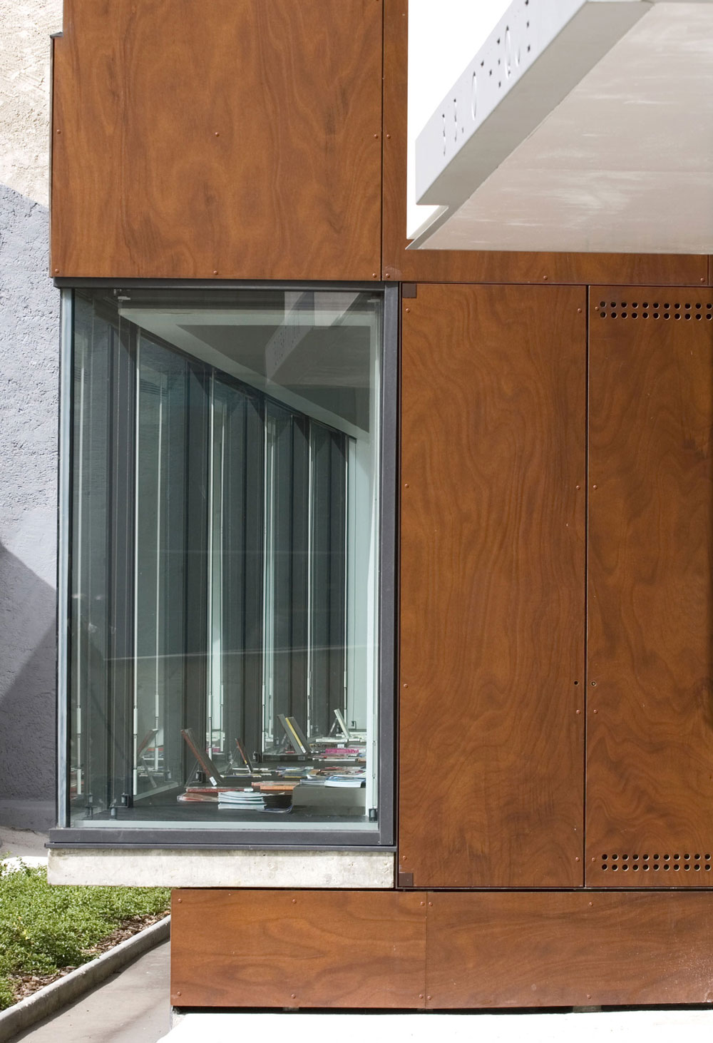 Les espaces s’organisent verticalement dans un volume en bois conçu tel un meuble urbain.