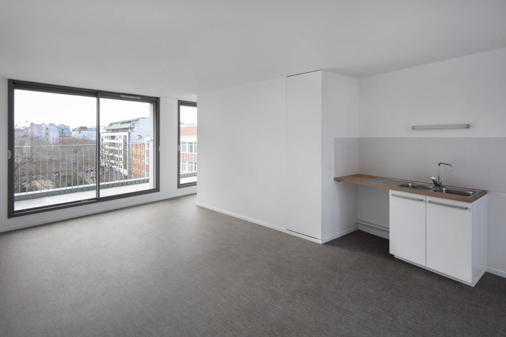 Le projet propose une réflexion alternative sur la typologie pour répondre à des modes de vie contemporains : les appartements s’organisent autour d’un « open-space » traversant de 33 m² dans lequel on peut se réunir, travailler, préparer la cuisine, manger... Cet espace distribue la chambre d’enfant ou le bureau. L’entrée constitue le vestibule qui donne accès au sanitaire, à la salle de bain et à la chambre parentale.