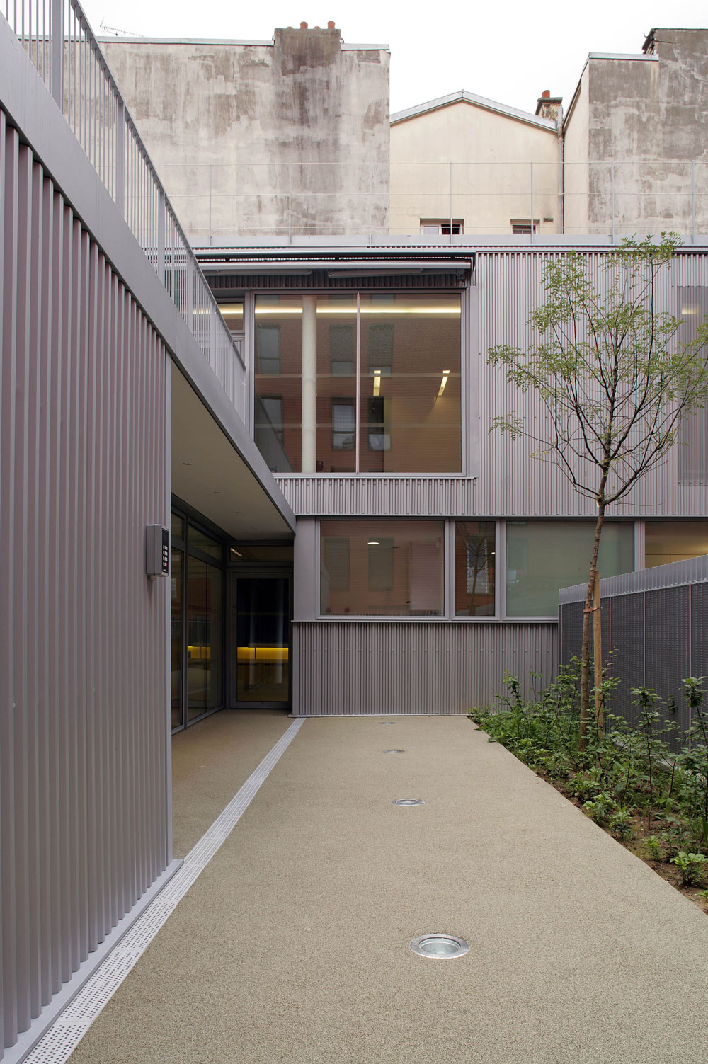 ce petit projet destiné à la petite enfance se faufile avec simplicité dans une parcelle résiduelle entre deux immeubles de 5 niveaux.