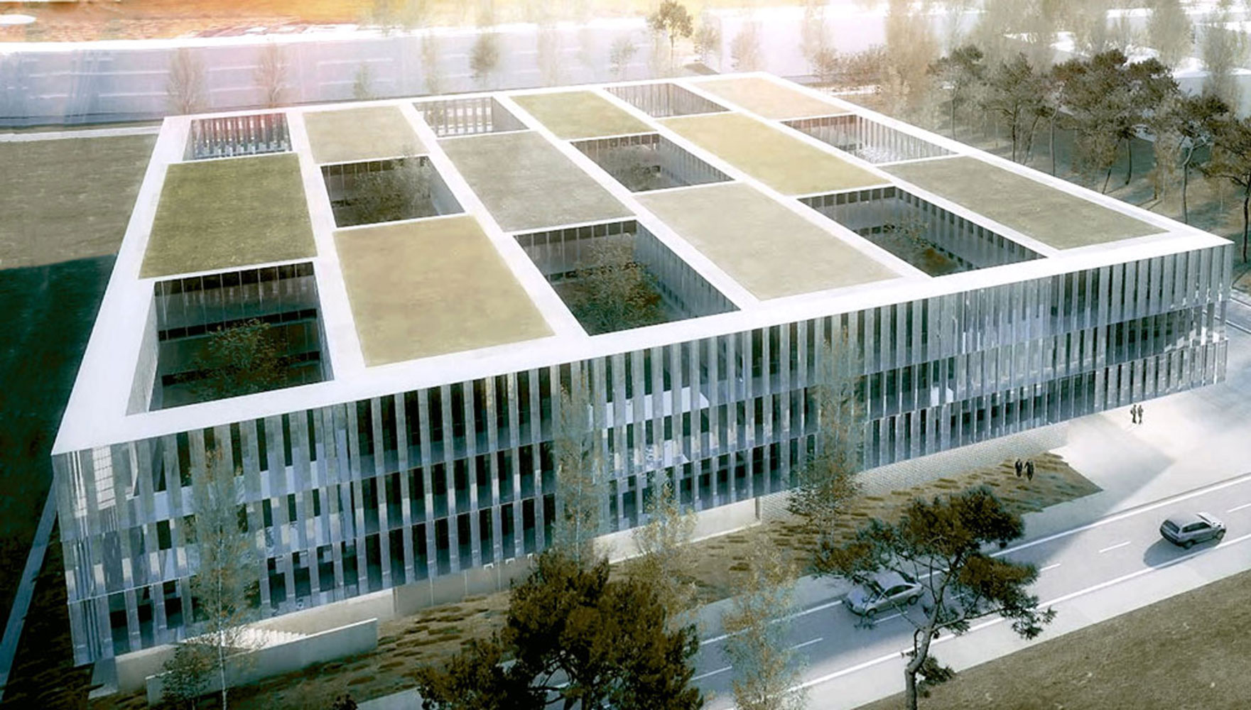 Tels les édifices prenant place dans les "grilles" urbaines américaines, le projet se veut à la fois autonome et résultant de la forme du maillage. A cela, s’ajoute un positionnement "classique", en retrait du grand paysage, tirant parti du promontoire formé par le plateau.
