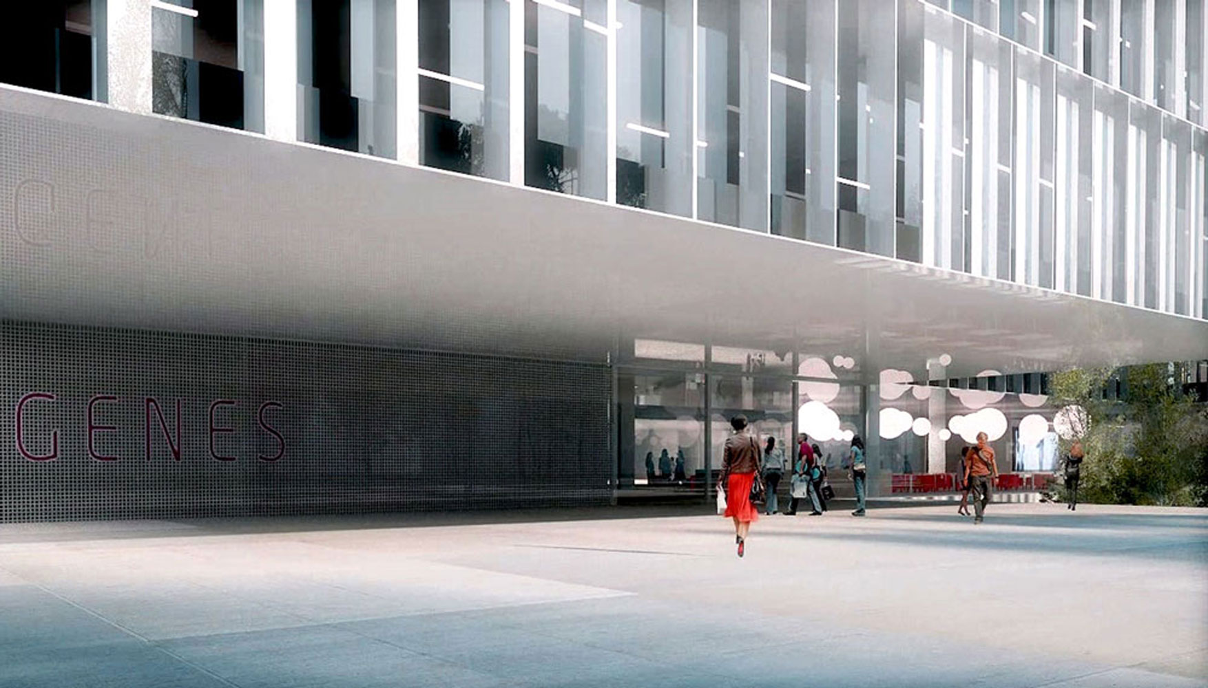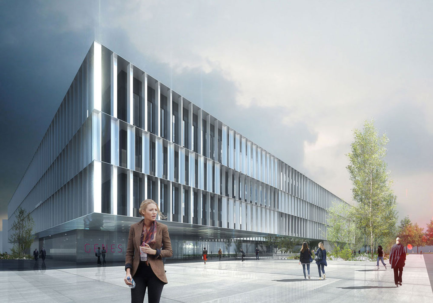 Ainsi, au premier abord, le projet du GENES se présente comme un prisme de forme régulière, laissant apparaître dans un deuxième temps des "inflexions" qui le mettent en relation avec le contexte proche, le qualifie et l’oriente :
