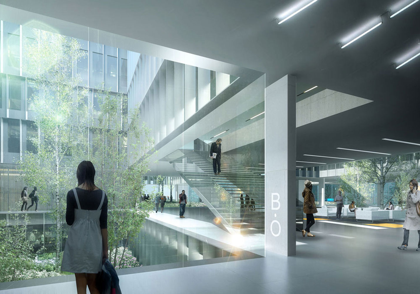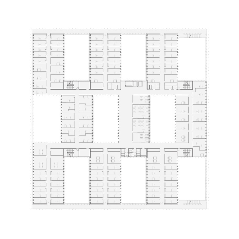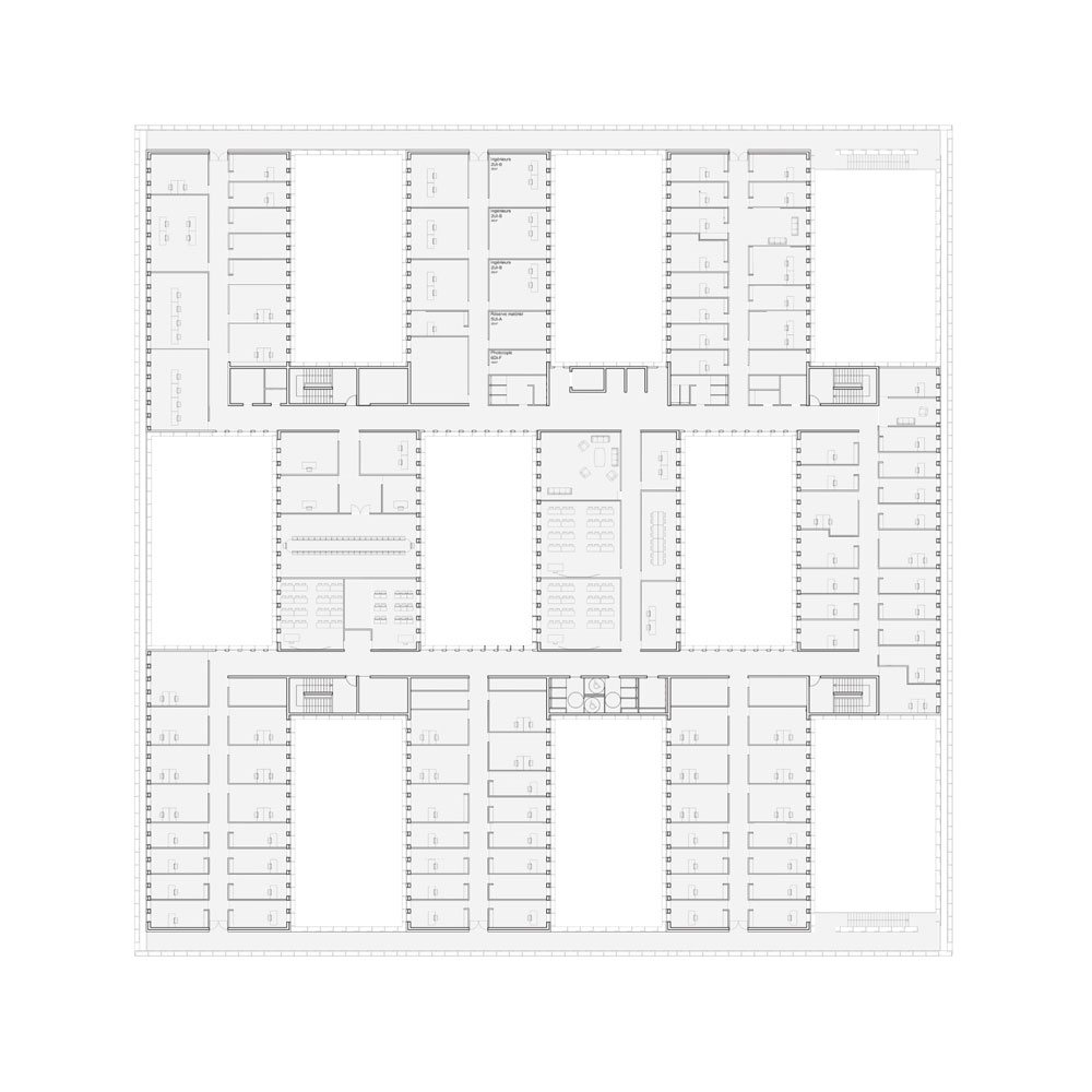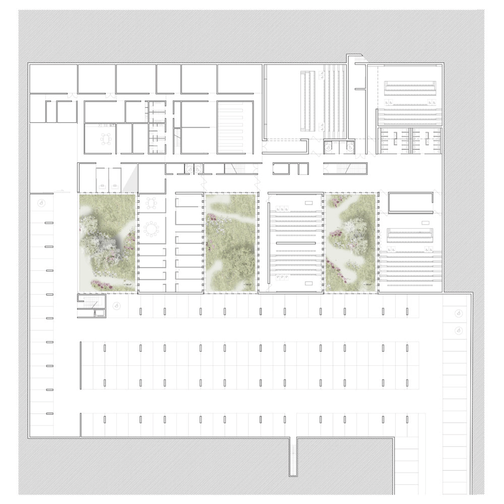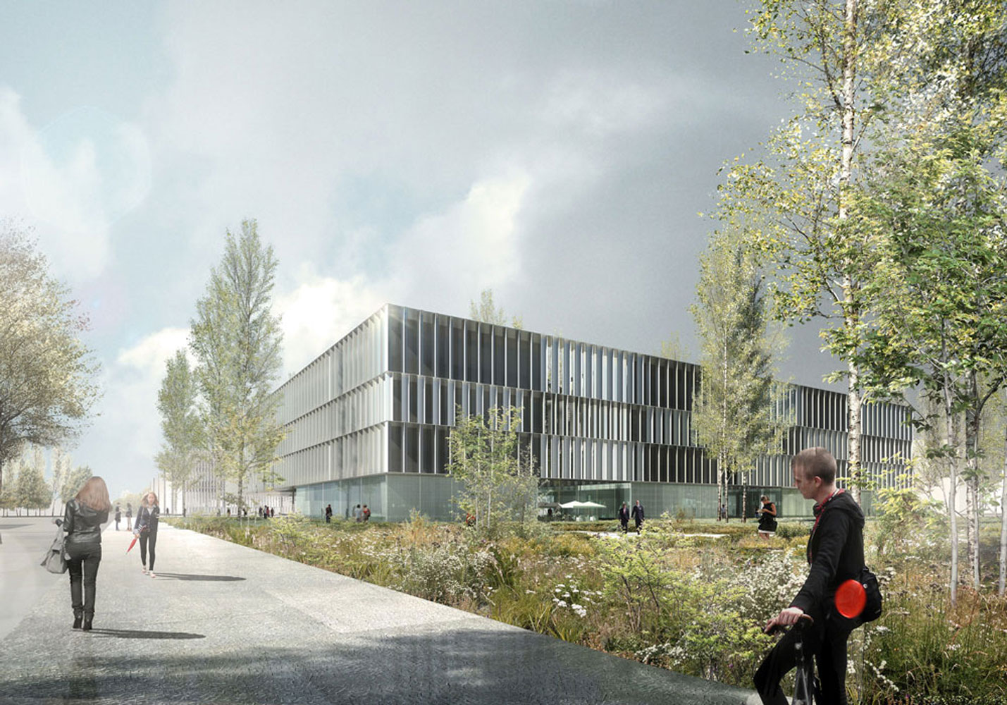 Le long de ces deux directions, le projet établi "à distance" un point d’arrêt au principe linaire de l’école polytechnique, ainsi qu’à celui des éléments de formes libres placés à la lisière du plateau.