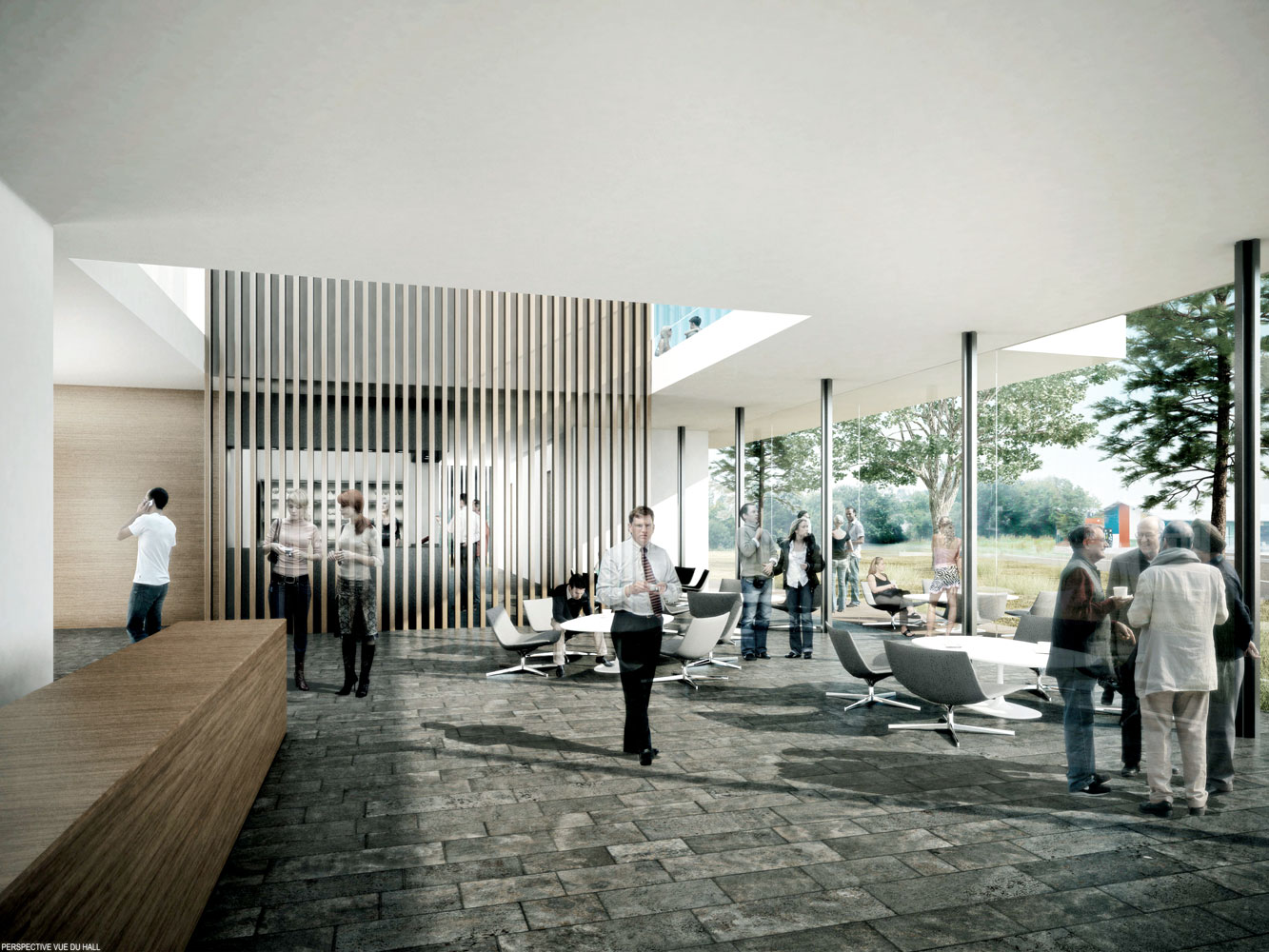 Les pleins s’assemblent autour de l’espace "fédérateur" du hall conçu en double hauteur.